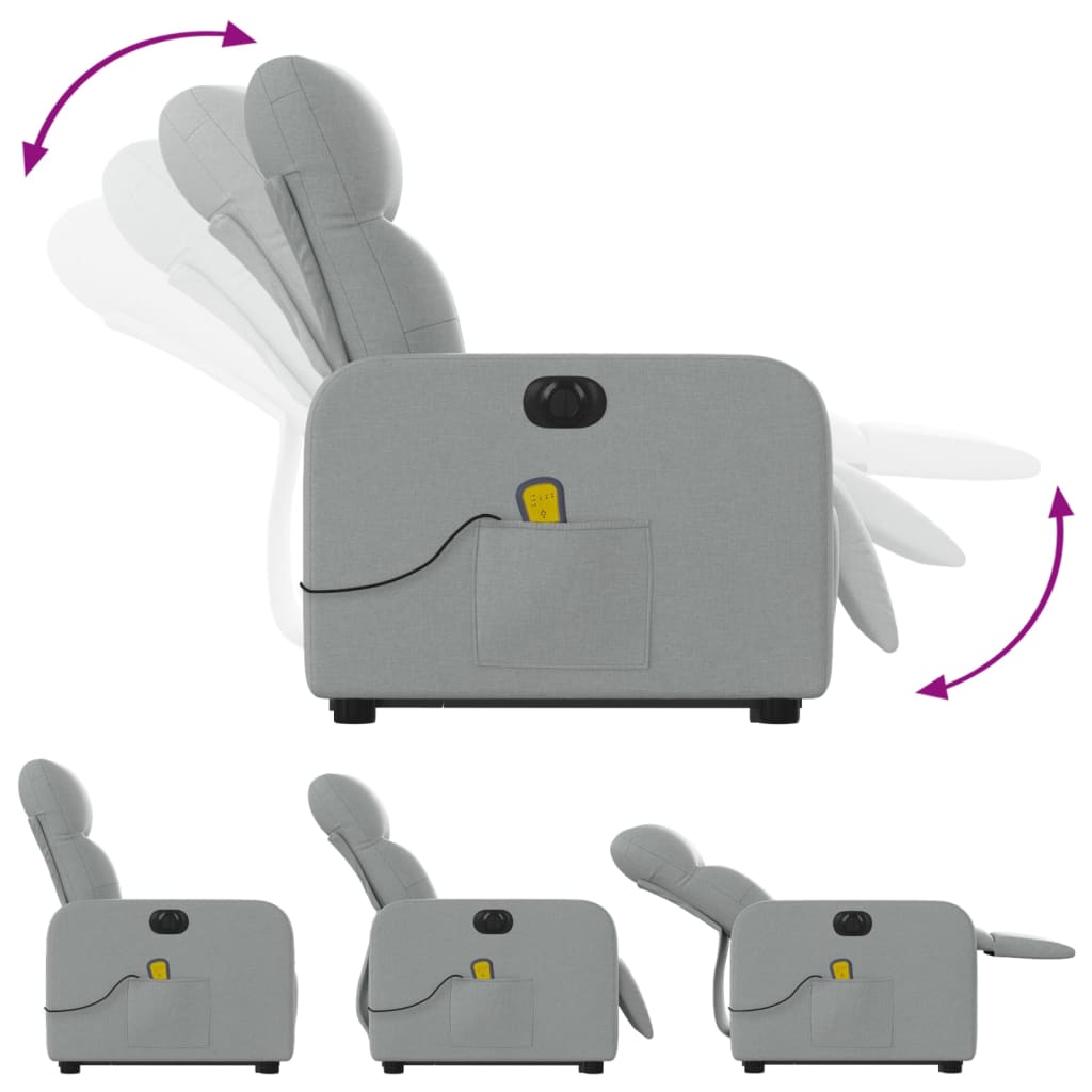 vidaXL Electric Stand up Massage Recliner Chair Light Gray Fabric